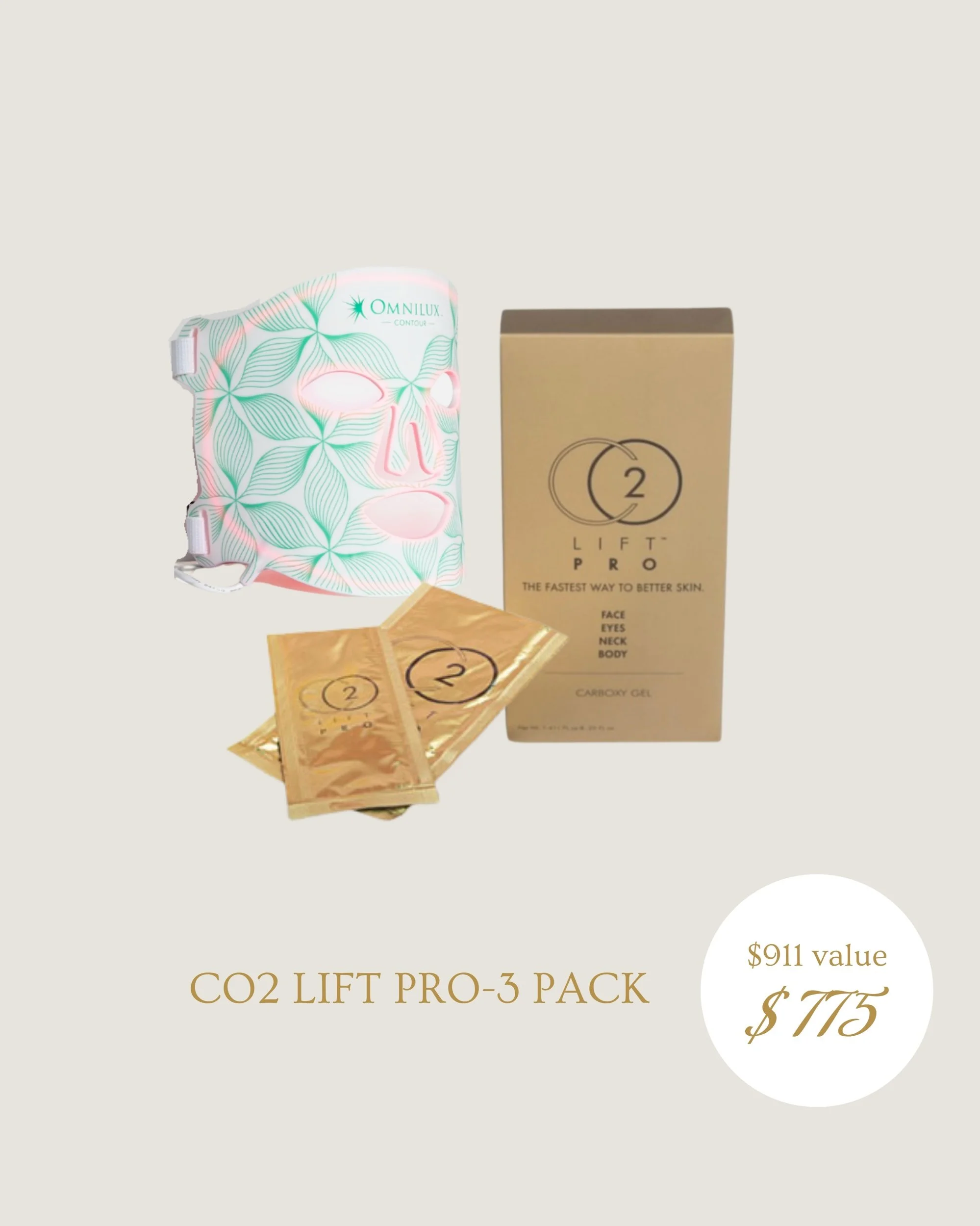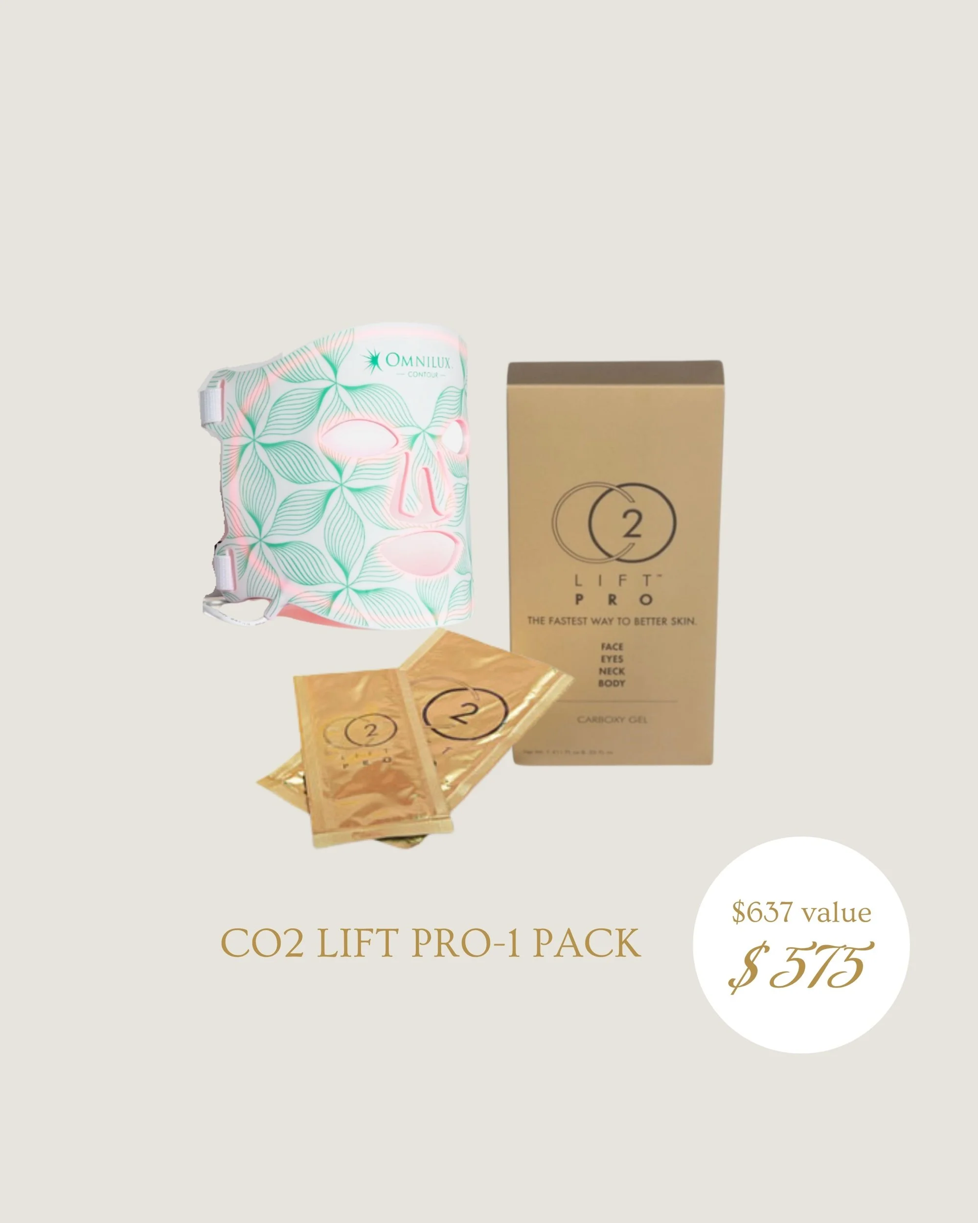 Includes: Single or 3 Pack of CO2Lift PRO Carboxytherapy Gel Mask + Omnilux Contour LED Mask
